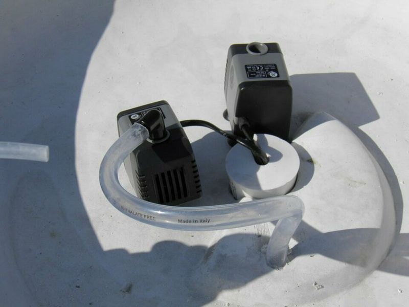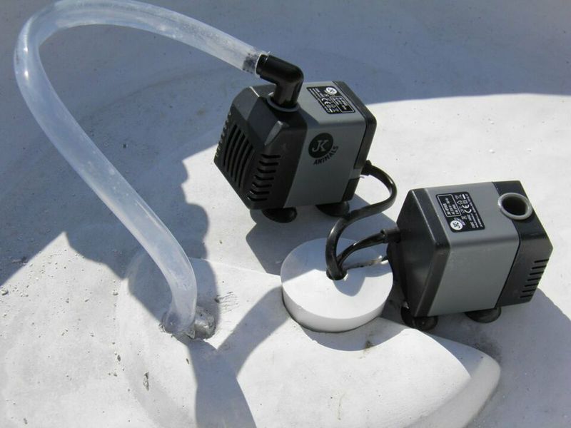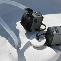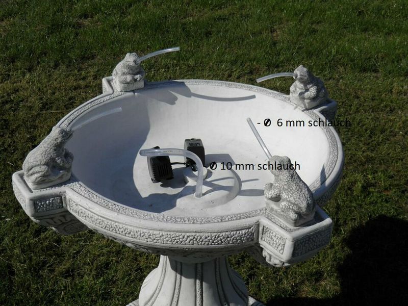 Wir empfehlen für die untere Schale eine Pumpe mit einer Förderhöhe von mindestens 80 cm und für die obere Schale eine Pumpe mit einer Mindestförderhöhe von 1,20m.