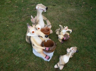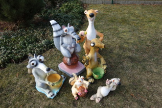 Ice Age Figuren, Drachen, Frosch auf Bank, Affen auf Bank, Maulwurf, Schaaf Dolly, Kühe klein, Enten