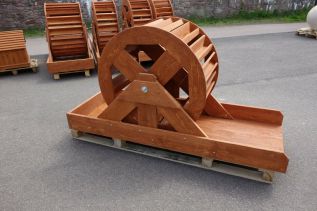 Dieses Wasserrad ist bereits imprägniert , sollte aber vor dem Einsatz noch mit Holzschutzlasur behandelt werden.