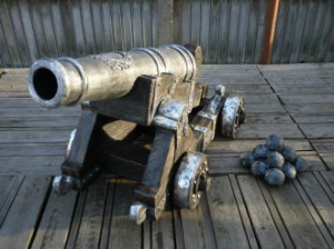 bestehend aus Grundgestell , Kanoneneinlage, Kanonenrohr und Kugelhaufen